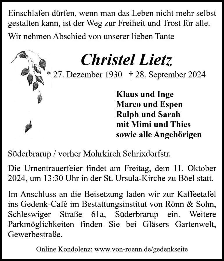 geboren am 27. Dezember 1930 in Stehlau; Krs Schloßberg gestorben am 28. September 2024 in Süderbrarup