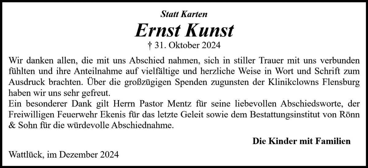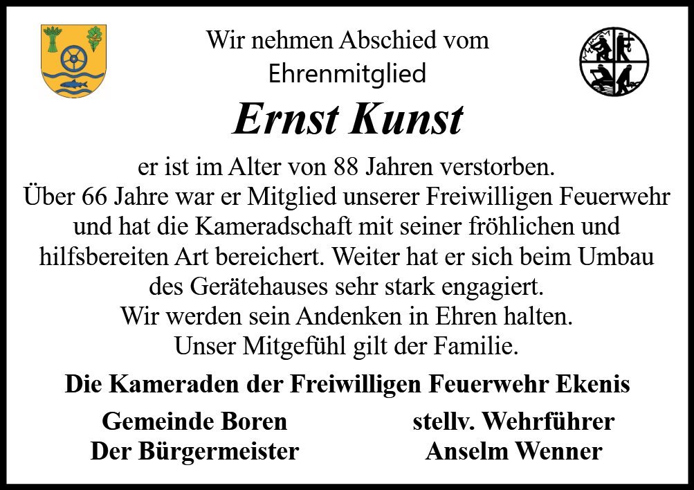 Wir haben Ernst als einen herzlichen und lebenslustigen Menschen kennengelernt, so werden wir ihn auch in Erinnerung behalten und möge Euch die Erinnerung an den lieben Verstorbenen begleiten wie ein wärmender Sonnenstrahl.