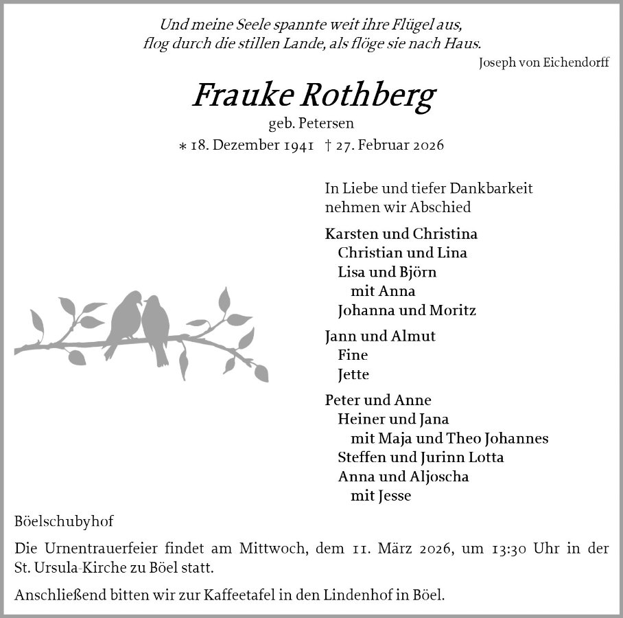 geboren am 18. Dezember 1941 in Katharinenheerd gestorben am 27. Februar 2026 in Böel OT Böelschuby
