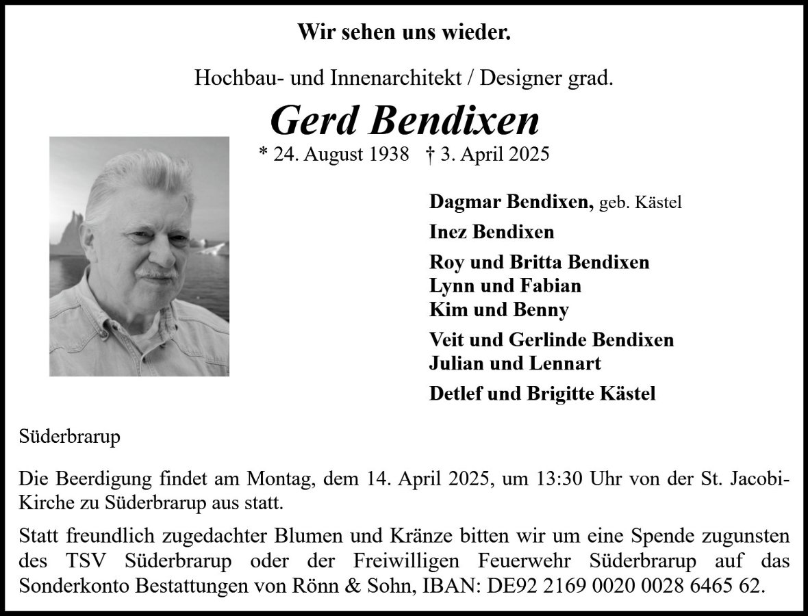 geboren am 24. August 1938 in Süderbrarup gestorben am 3. April 2025 in Süderbrarup