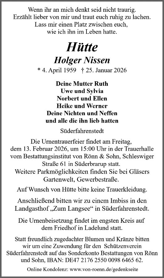 wir wünschen Ihnen von Herzen viel Kraft, dass Sie Menschen um sich haben, die Ihnen in dieser schweren Zeit beistehen und Halt geben. Zusätzlich können Sie auf dieser Gedenkseite Erinnerungen teilen und so das Andenken gemeinsam wachhalten.