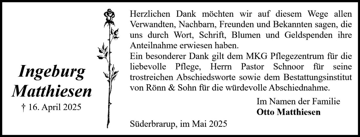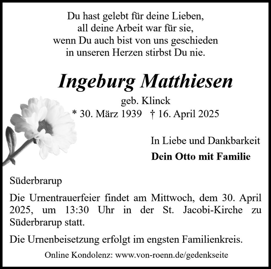 geboren am 30. März 1939 in Brodersby/Schönhagen gestorben am 16. April 2025 in Süderbrarup