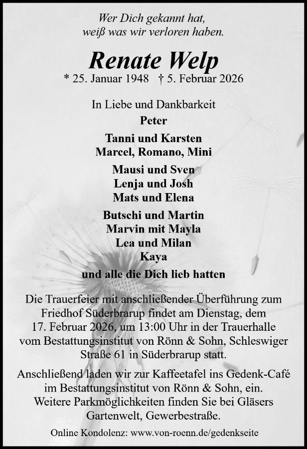 wir wünschen Ihnen von Herzen viel Kraft, dass Sie Menschen um sich haben, die Ihnen in dieser schweren Zeit beistehen und Halt geben. Zusätzlich können Sie auf dieser Gedenkseite Erinnerungen teilen und so das Andenken gemeinsam wachhalten.