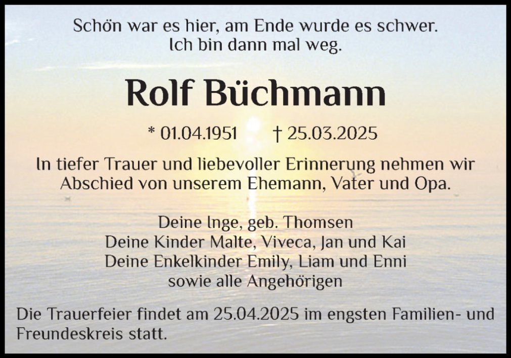 geboren am 1. April 1951 in Süderbrarup gestorben am 25. März 2025 in Schleswig