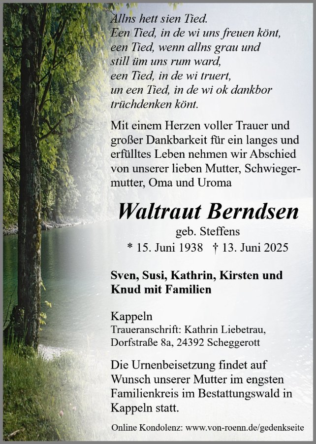 wir wünschen Ihnen von Herzen viel Kraft, dass Sie Menschen um sich haben, die Ihnen in dieser schweren Zeit beistehen und Halt geben. Zusätzlich können Sie auf dieser Gedenkseite Erinnerungen teilen und so das Andenken gemeinsam wachhalten.